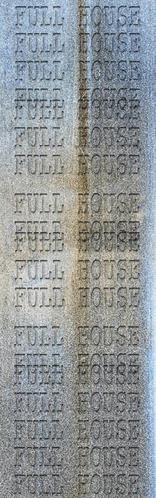 In the moment when a poker hand and a buried memory align, adult amusement and childhood joy overlap—their misalignment becomes a captured memory. In this ongoing game of chance and will, may we all draw a FULL HOUSE.
